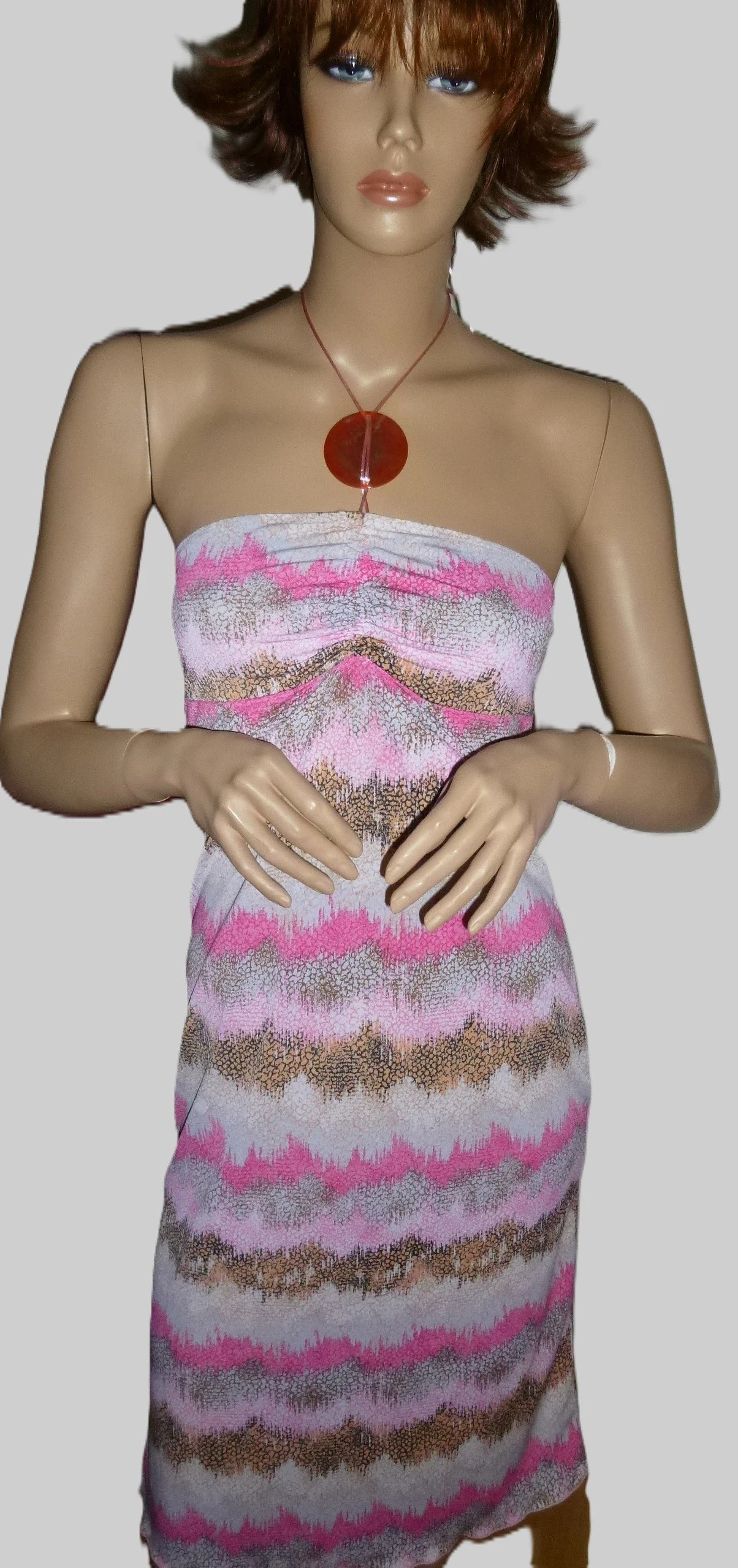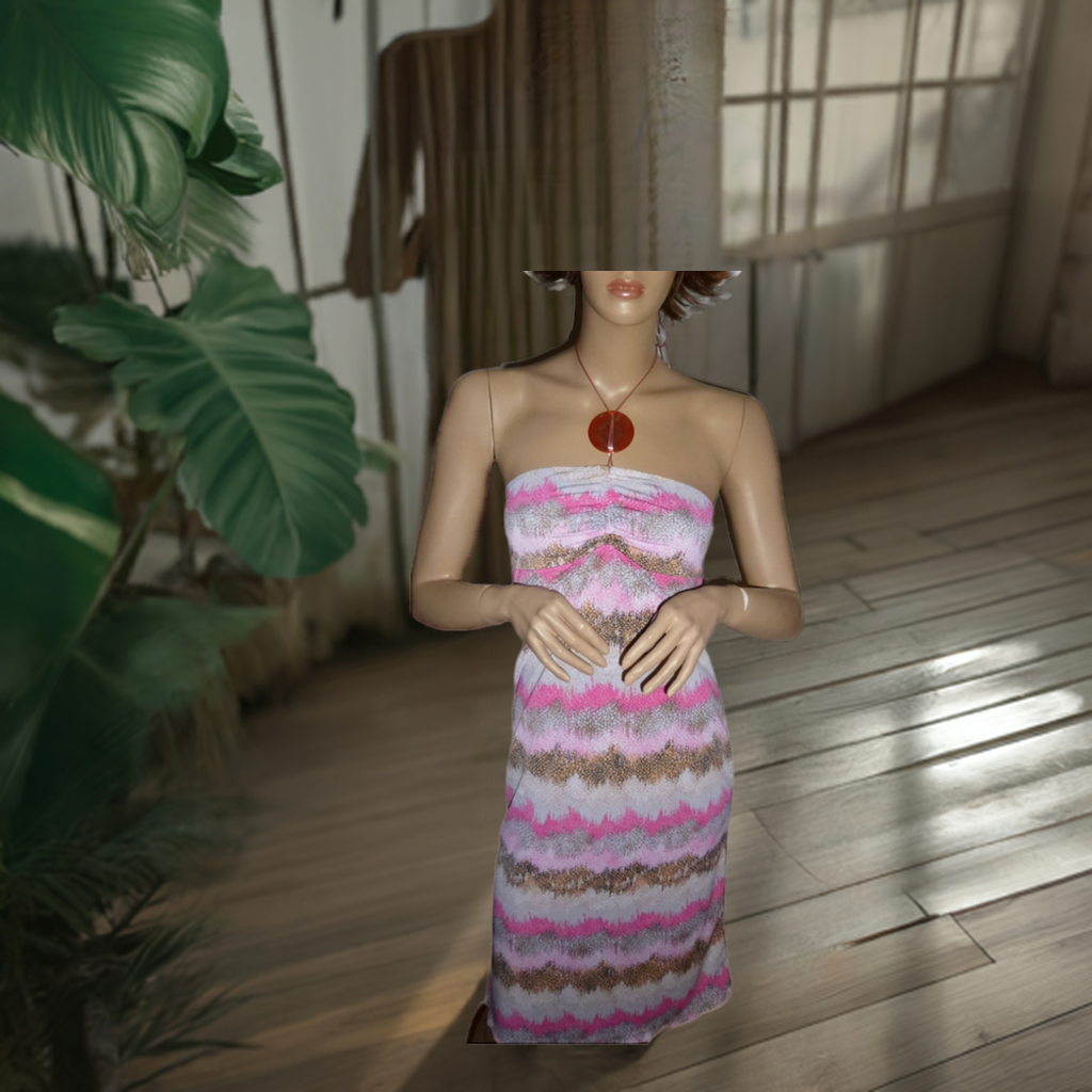 Verhef je avondgarderobe met onze strapless jurk, versierd met fonkelende strass-steentjes. Ontworpen om het decolleté elegant te accentueren met een verfijnd silhouet, straalt deze jurk tijdloze elegantie en subtiele glamour uit. De glinsterende details vangen het licht op betoverende wijze, zodat je bij elke stap schittert.