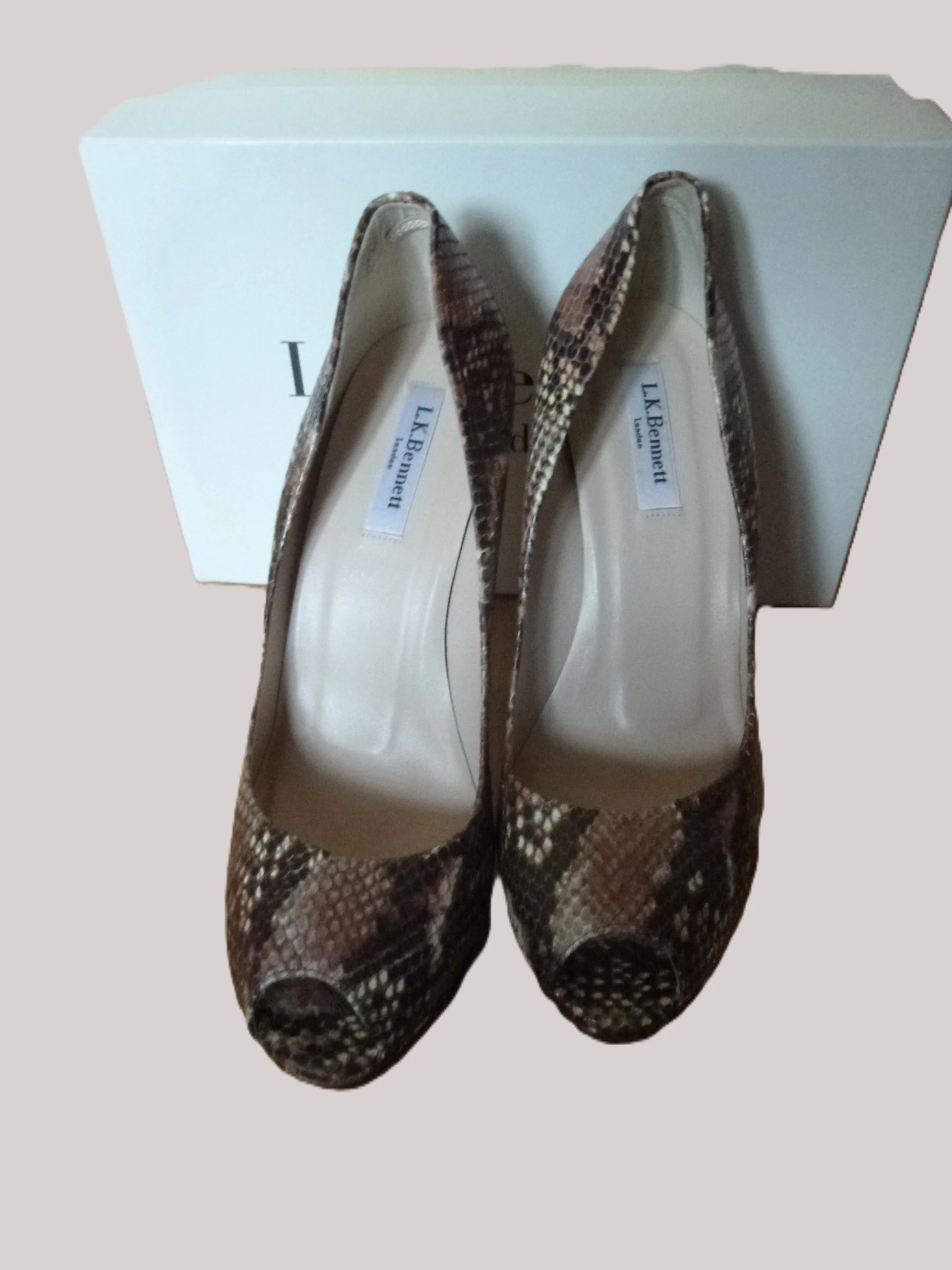Categories: All Jurken Blazers Schoenen All / L.K. Bennett Snakeprint nude pumps Sale Price: €90.00 Original Price: €230.00 Sale View Options SILVER LEATHER PUMPS KAREN MILLEN Sale Price: €95.00 Original Price: €195.00 Sale View Options Elegant Patent Leather Stiletto Sandals Manolo Blahnik Sale Price: €190.00 Original Price: €290.00 Sale View Options Sandales Noirs à talons compensés L.K. Bennett Sale Price: €180.00 Original Price: €330.00 Sale Add to chart Added!